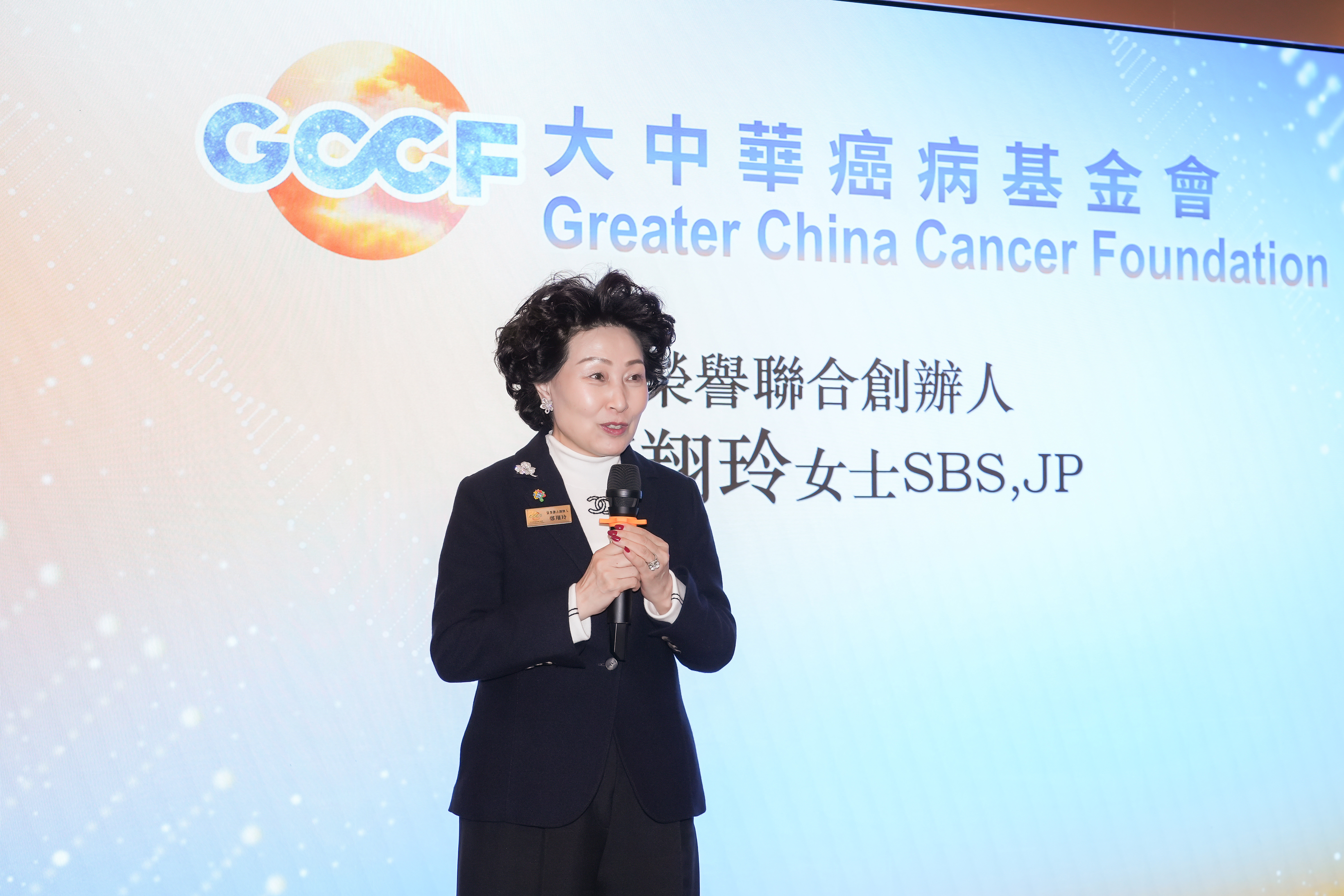基金會榮譽聯合創辦人鄭翔玲女士在致辭中,表達欣賞基金會對病患者的一份愛心,更形容基金會的工作正為中國藥企來港創造有利生態。她指出自己是基金會最早的支持者,希望一同實踐「讓香港人晚病一天、早好一天」的理念。她呼籲在座藥企伙伴同心努力,讓更多香港病人能以更可負擔的價格,用上優質創新的國產藥物。