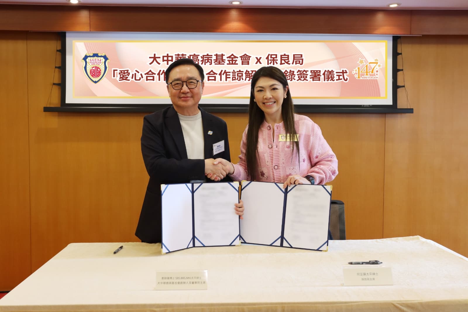 大中華癌病基金會(下稱基金會)與「愛心合作伙伴」保良局,於2026年1月15日在保良局總部舉行合作備忘錄簽署儀式,標誌著雙方連續第二年深化協作,共同為癌症患者提供更適切、更及時的藥物資助與關懷支援。